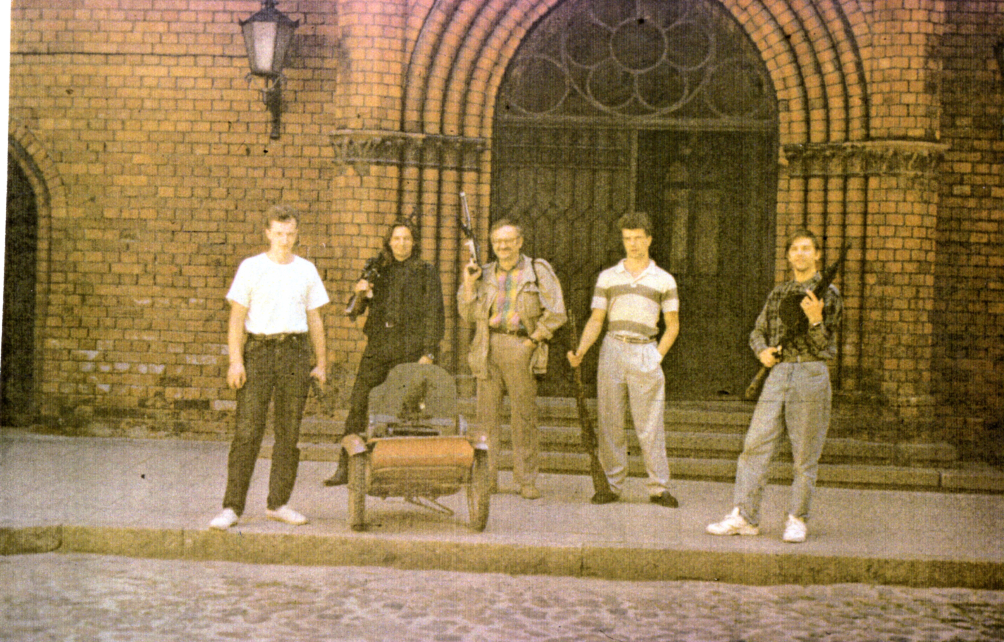 Un 90. gados bija tāds kluss pārmetums no Kara muzeja vadības, kāpēc mūsu kolekcijas neatdod. Protams, LNVM vadībai nebija nekāda pamata tagad pēkšņi ņemt un atdot. Kaut arī šo to mēs dabūjām atpakaļ. Es vēl skaidri atceros, kā mēs tāds bariņš jauniešu (es, Ēriks, Valters, Uldis Neiburgs, Egīls Gelderiņš, kurš toreiz bija zinātniskais direktors) gājām uz RVKM, – ir vēl fotogrāfijas saglabājušās. Muzejs mums atdod kaut kādus ieročus, un mēs cauri visai Vecrīgai tos ieročus nesam (Maksima ložmetēju bijām uzlikuši uz tačkas), ārzemnieki ar mums fotografējās. Vēl kaut kur ir bilde, kur mēs, tādi garmataini čaļi, stāvam ar tiem ieročiem pie muzeja ieejas. Tas bija kāds 1997. gads. Es gan neatceros, kā tā vienošanās par atdošanu bija notikusi.